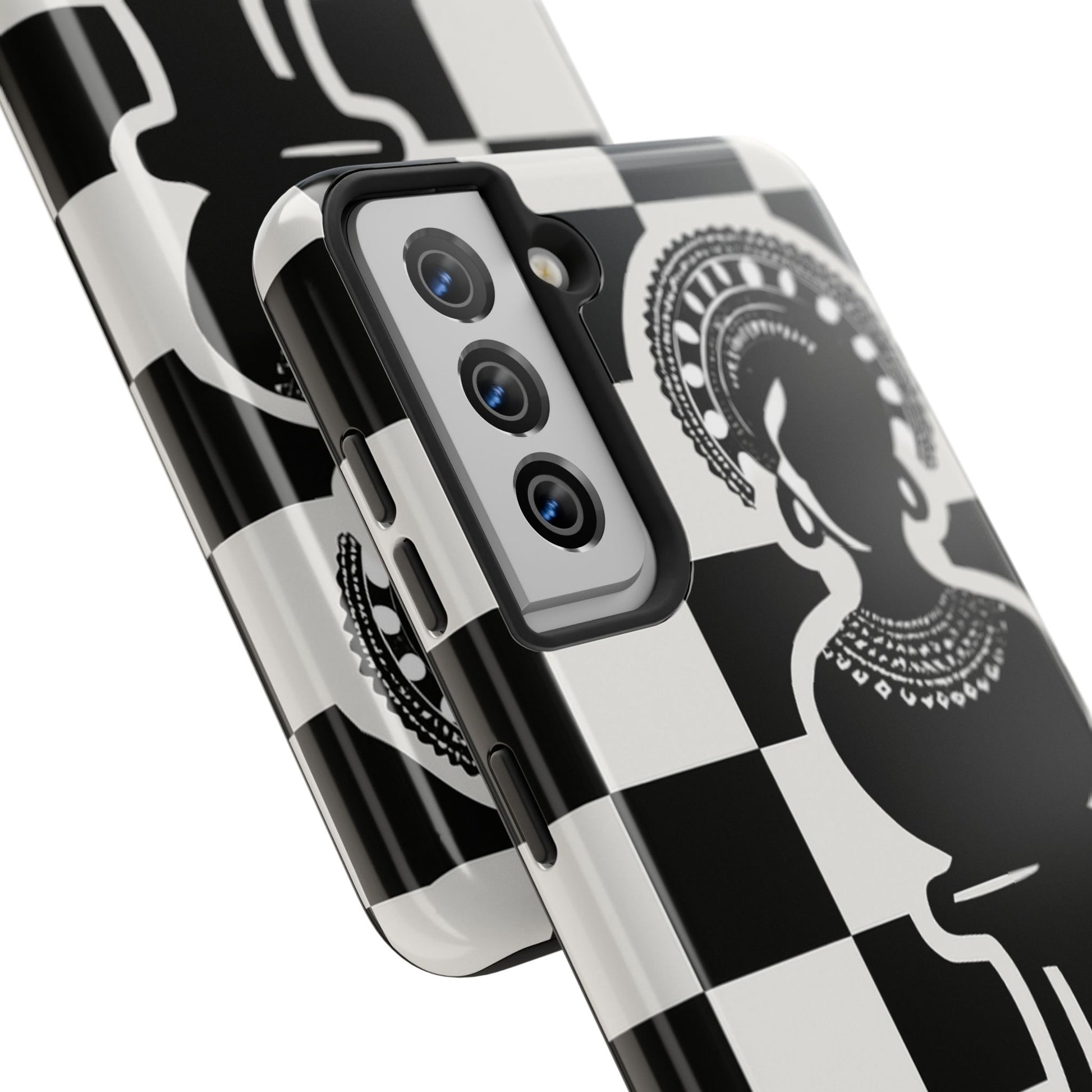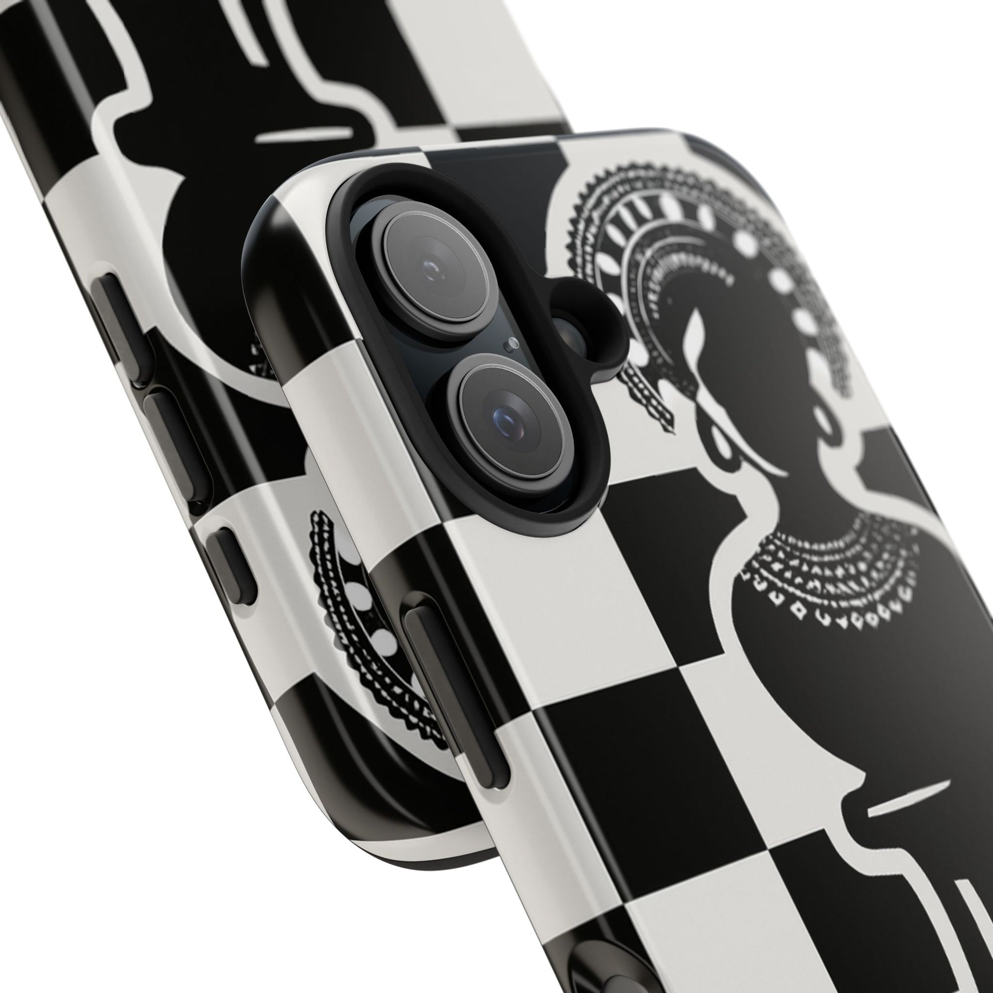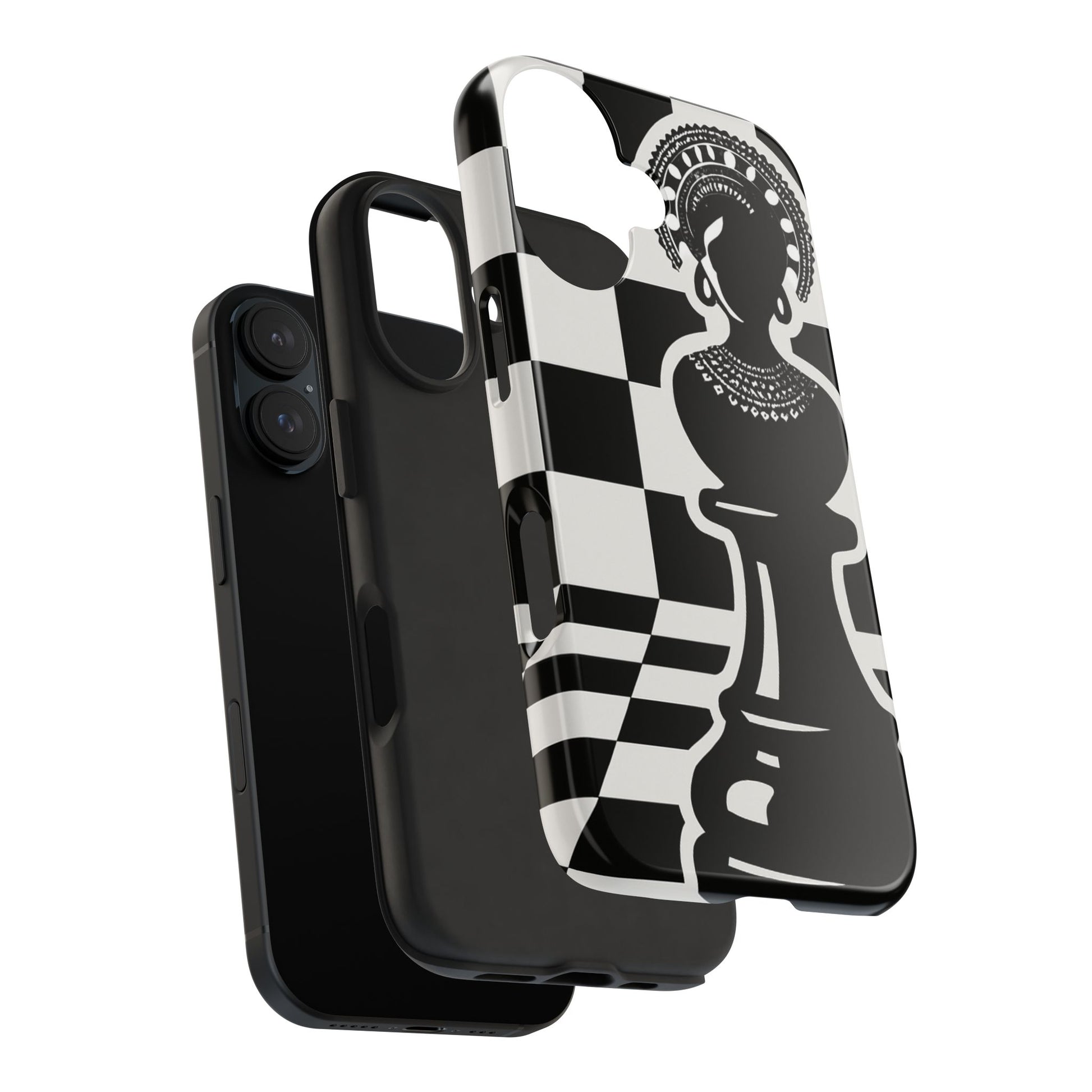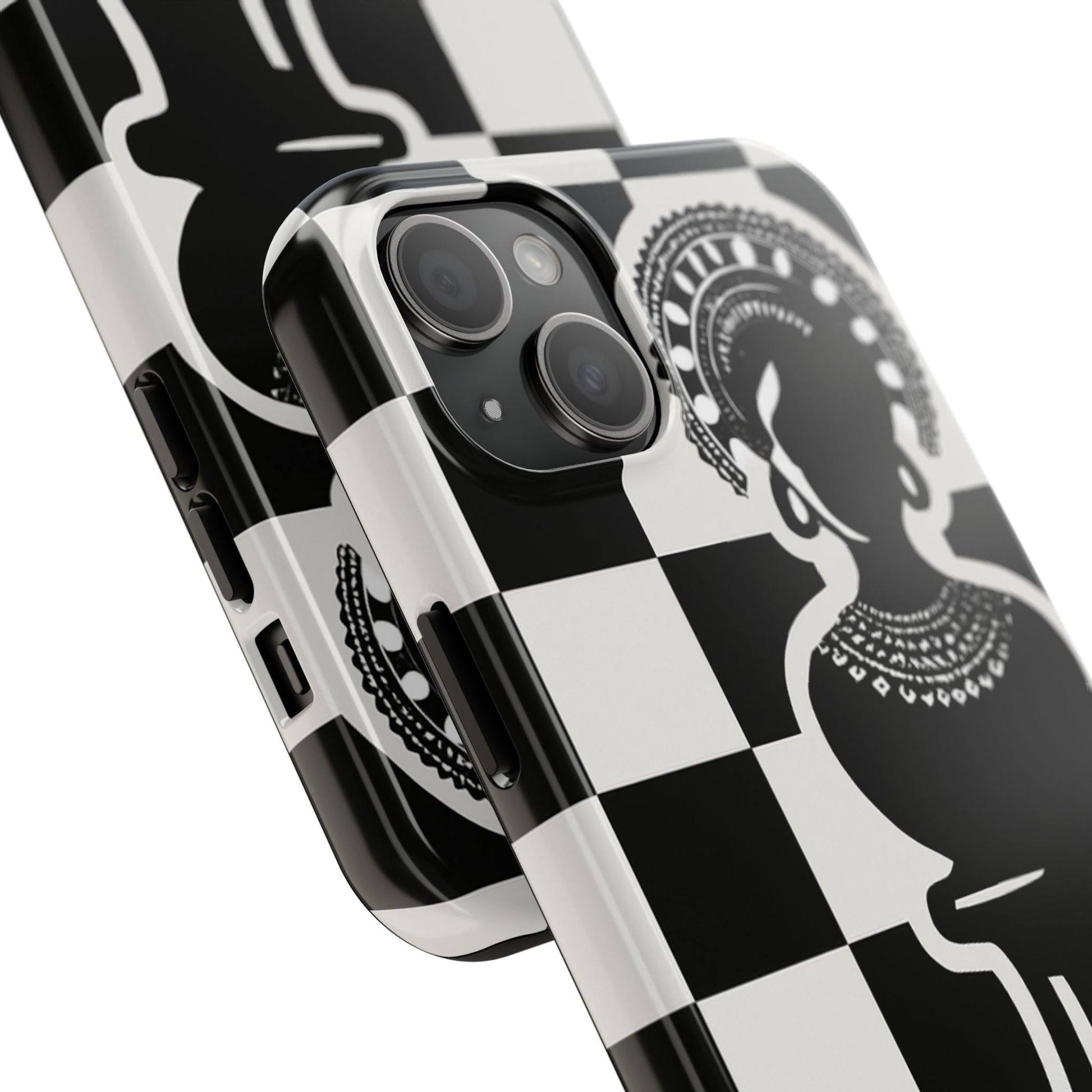 Chess Queen Phone Case, Tough Phone Cases, Stylish Accessories, Unique Gift, Geometric Design, Black and White Aesthetic