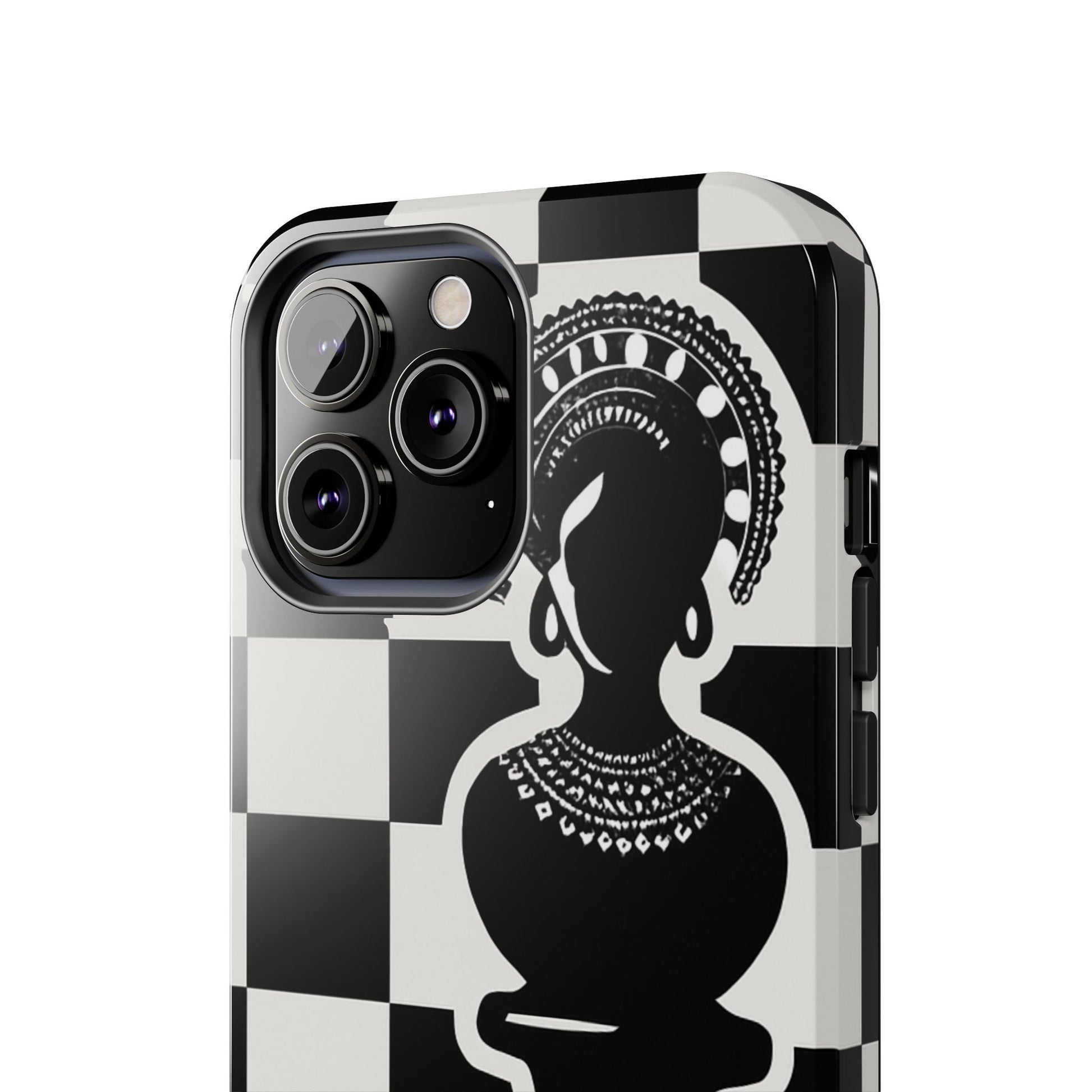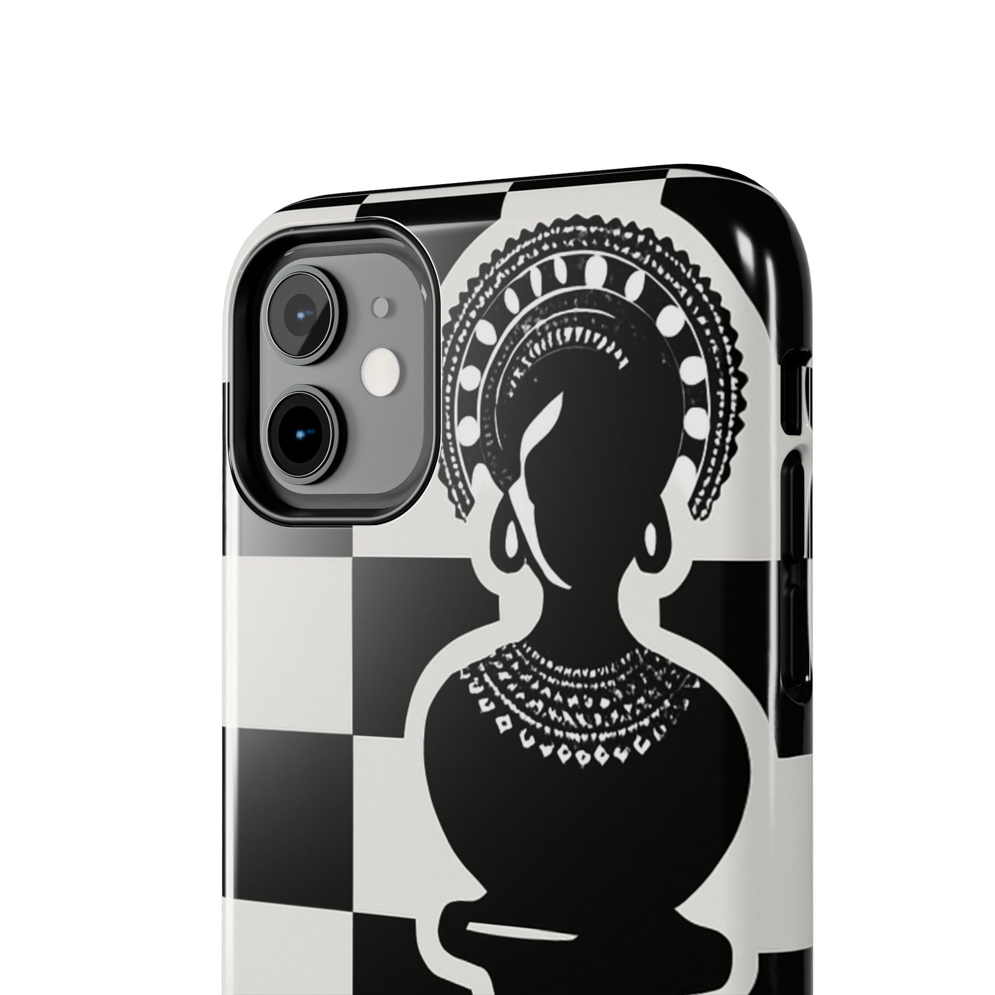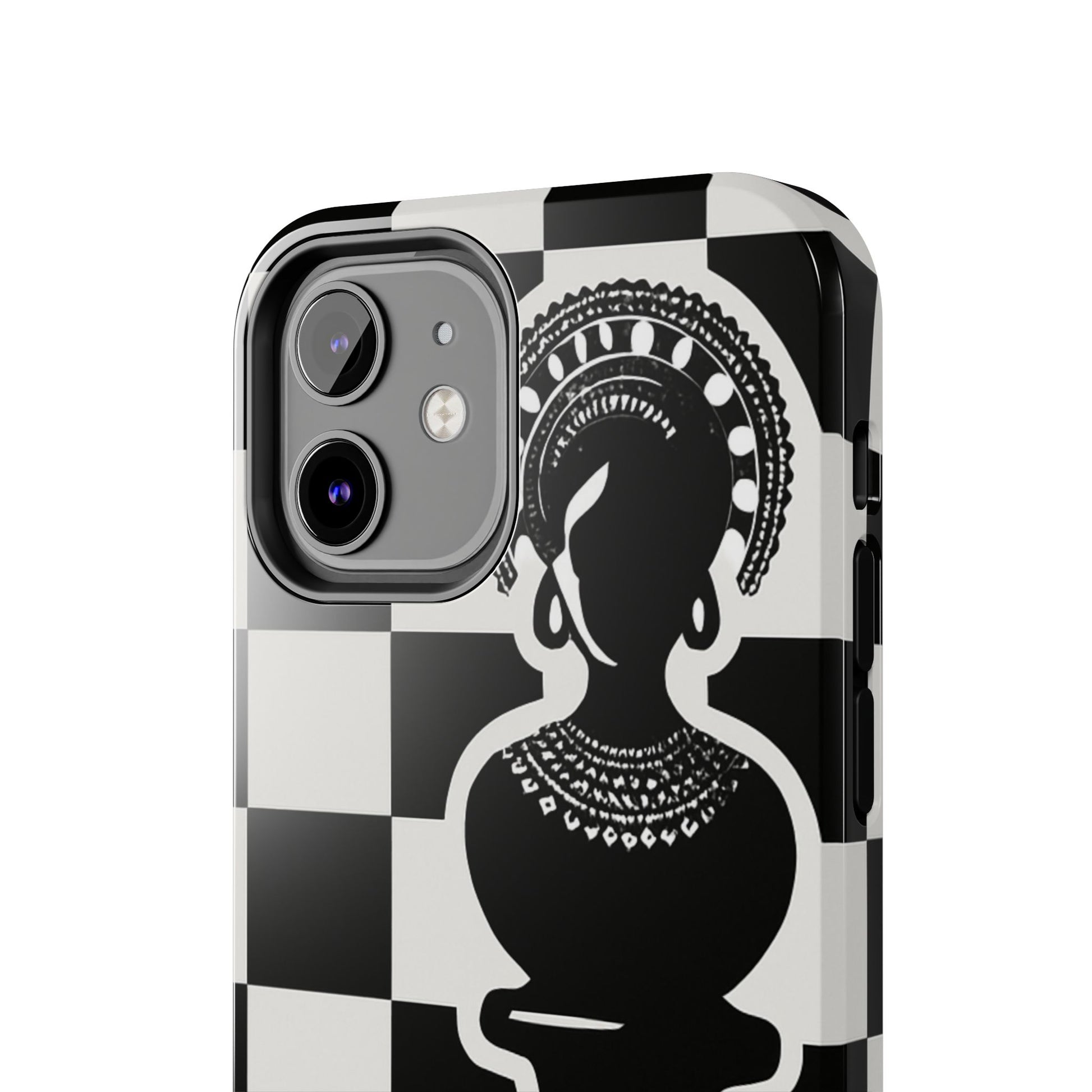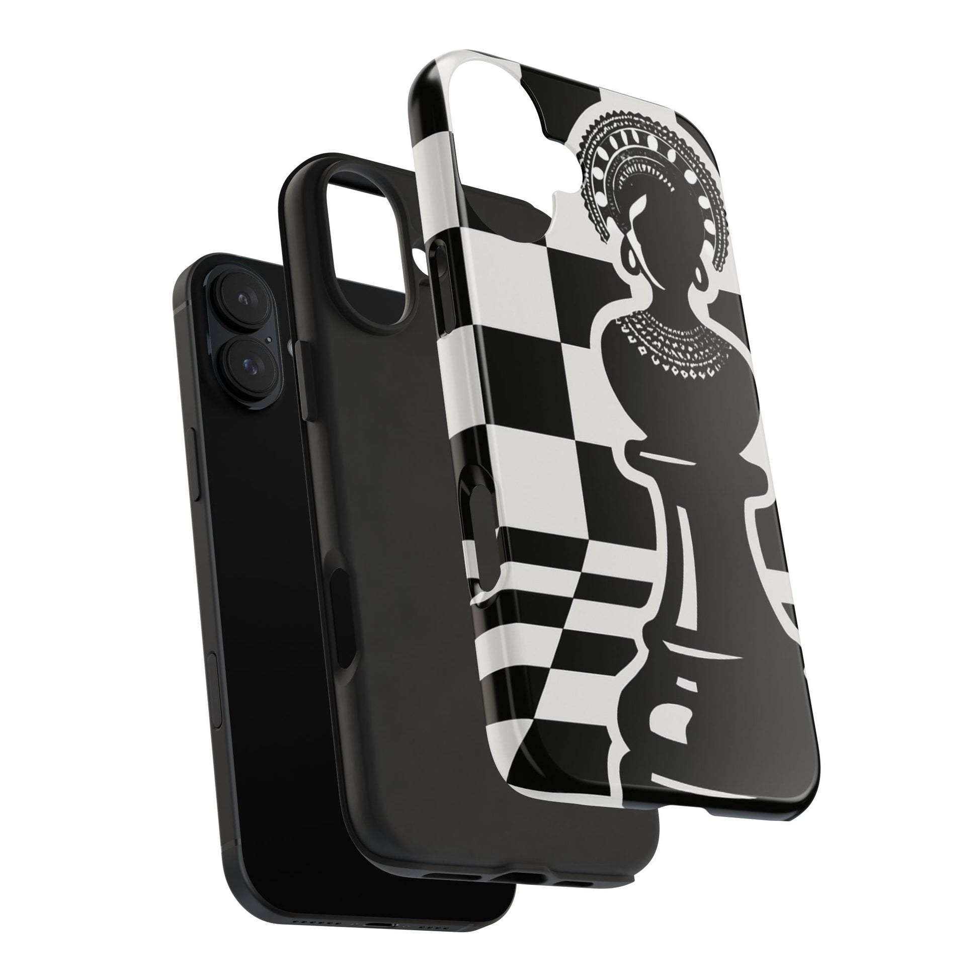 Chess Queen Phone Case, Tough Phone Cases, Stylish Accessories, Unique Gift, Geometric Design, Black and White Aesthetic