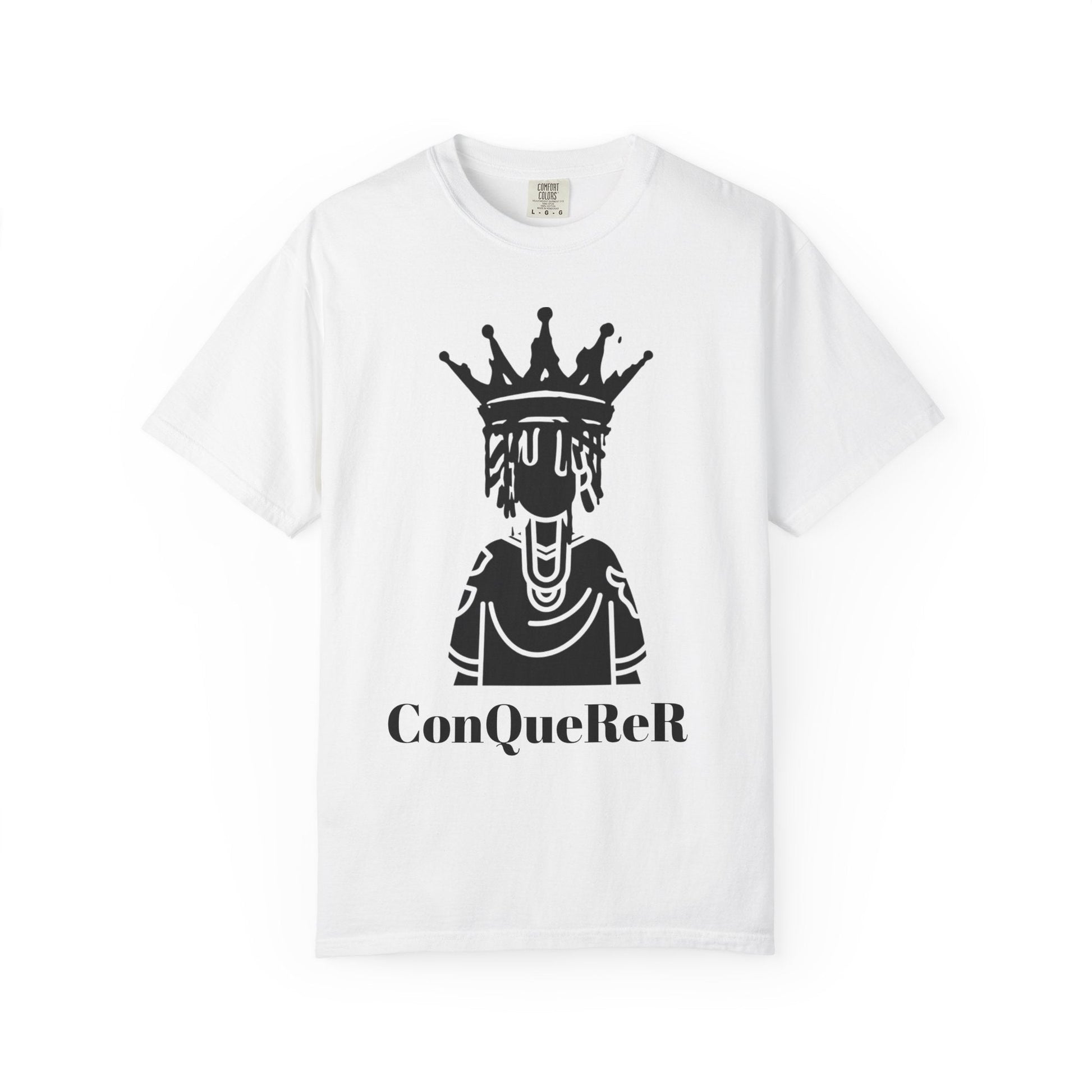 Step into your power with the "ConQueReR Crown" tee — a bold symbol of self-mastery, royalty, and resilience. Featuring a stylized crowned figure with abstract, street-inspired detailing, this black-on-white design fuses urban art with regal energy.