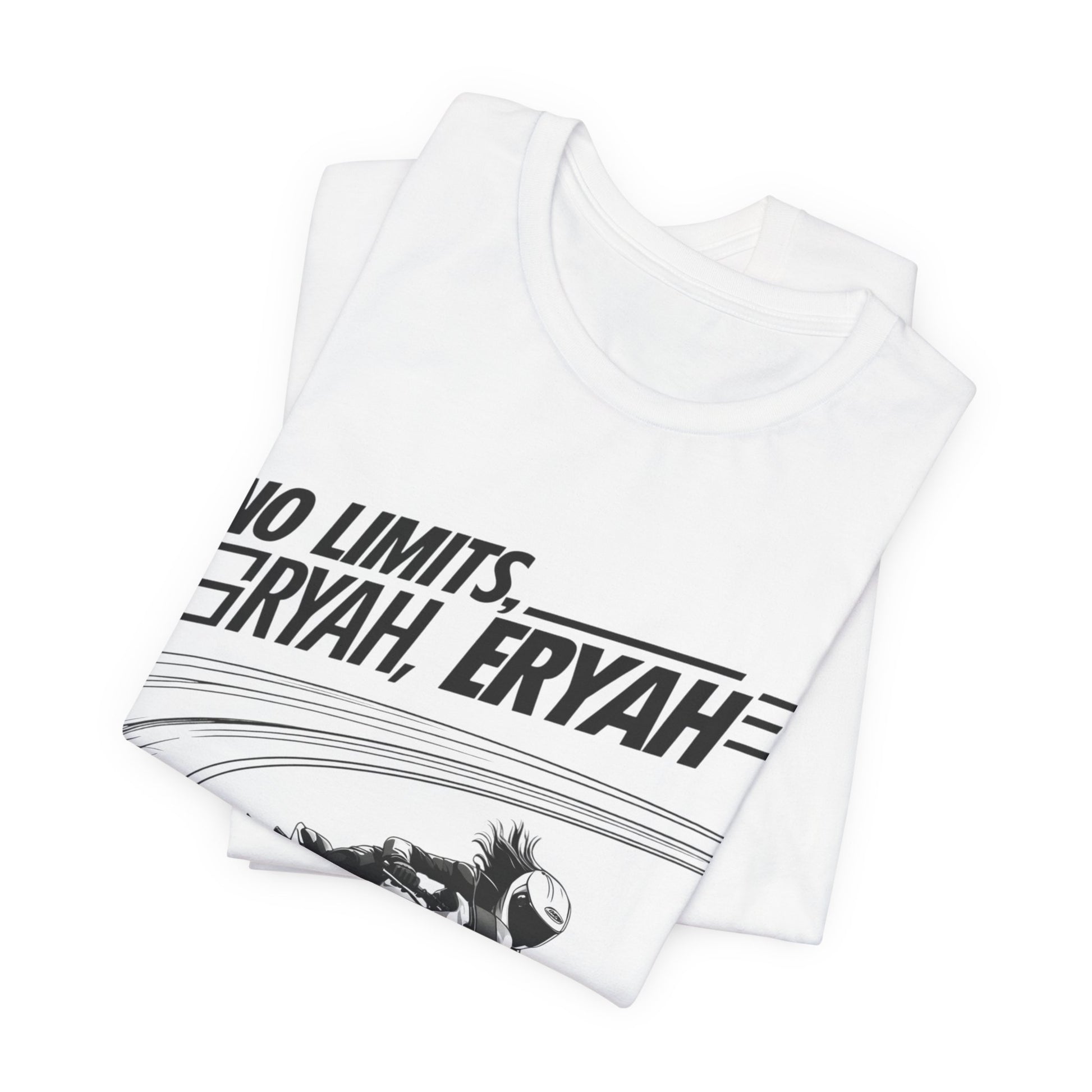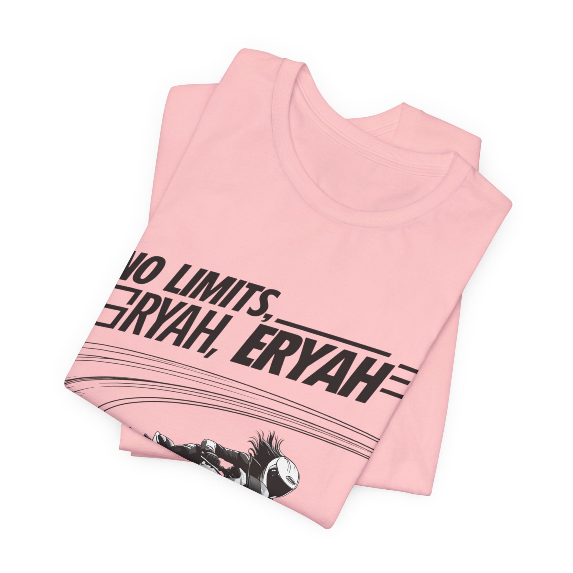 Speed meets style in the "No Limits, ERYAH" graphic tee. Designed for adrenaline lovers and freedom seekers, this bold shirt features a dynamic illustration of a motorcyclist carving sharp turns, paired with the empowering slogan: "NO LIMITS, ERYAH ". It merges fierce energy with a fresh, fashionable edge. Whether you're on the road or in the city, this tee keeps your look fast, fearless, and unmistakably ERYAH. Perfect for active and leisure wear.