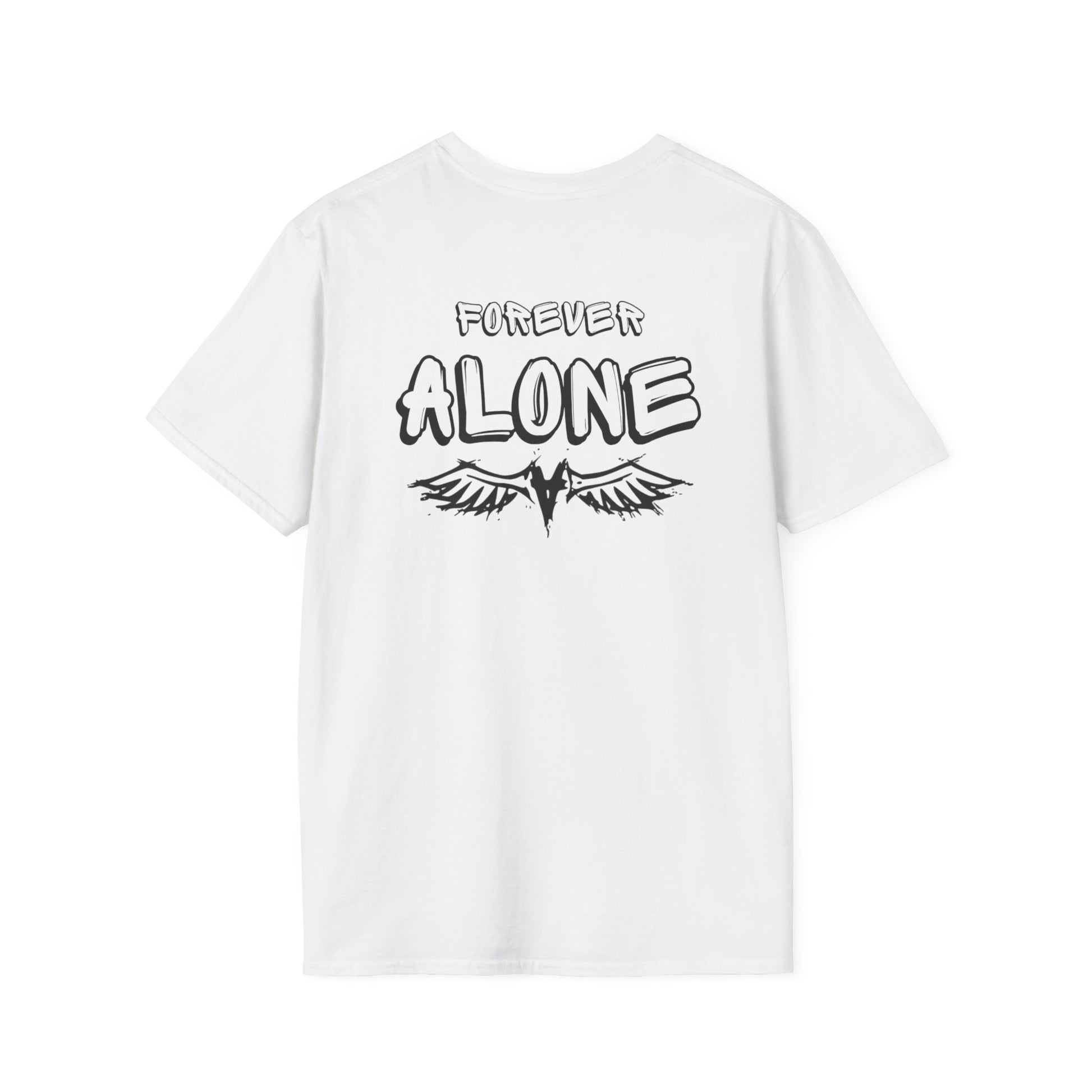 Embrace your unique path with our 'Forever Alone' graphic tee. This edgy and independent vibe t-shirt features bold typography paired with a dark wing graphic, perfect for those with alternative and edgy styles. Made from soft, comfortable fabric, it's a statement piece for everyday wear. Ideal for adults who appreciate a darker aesthetic and want to express their individuality. Great for casual wear, concerts, alternative events, and everyday occasions.