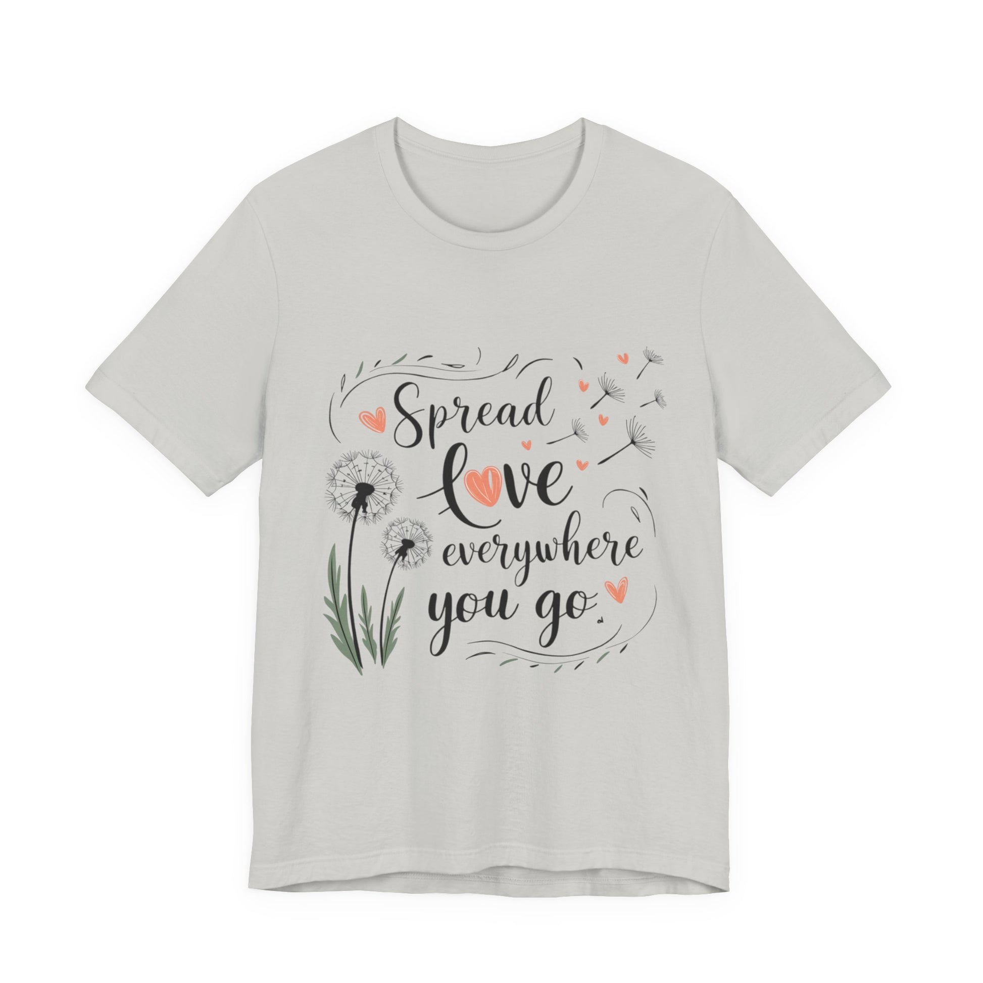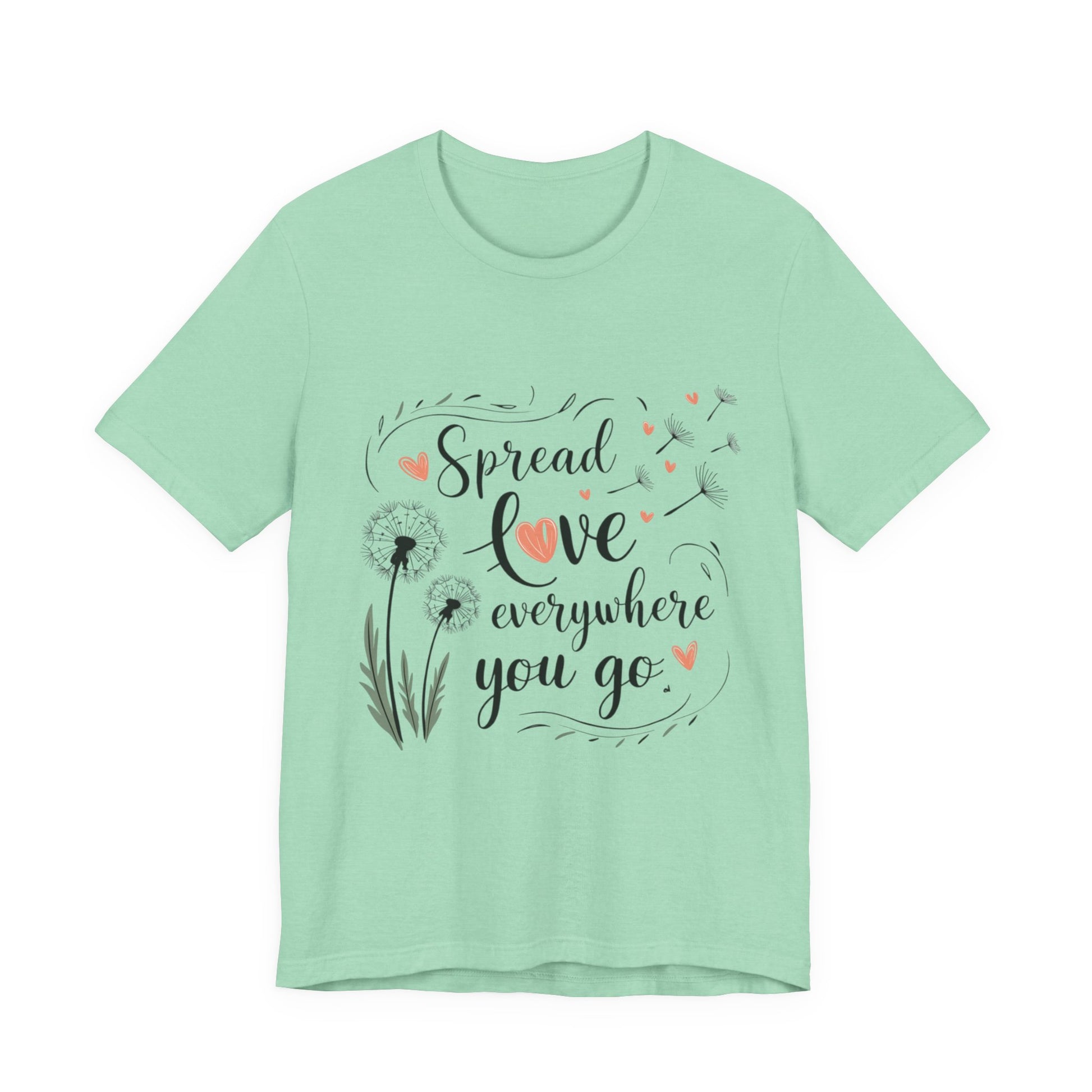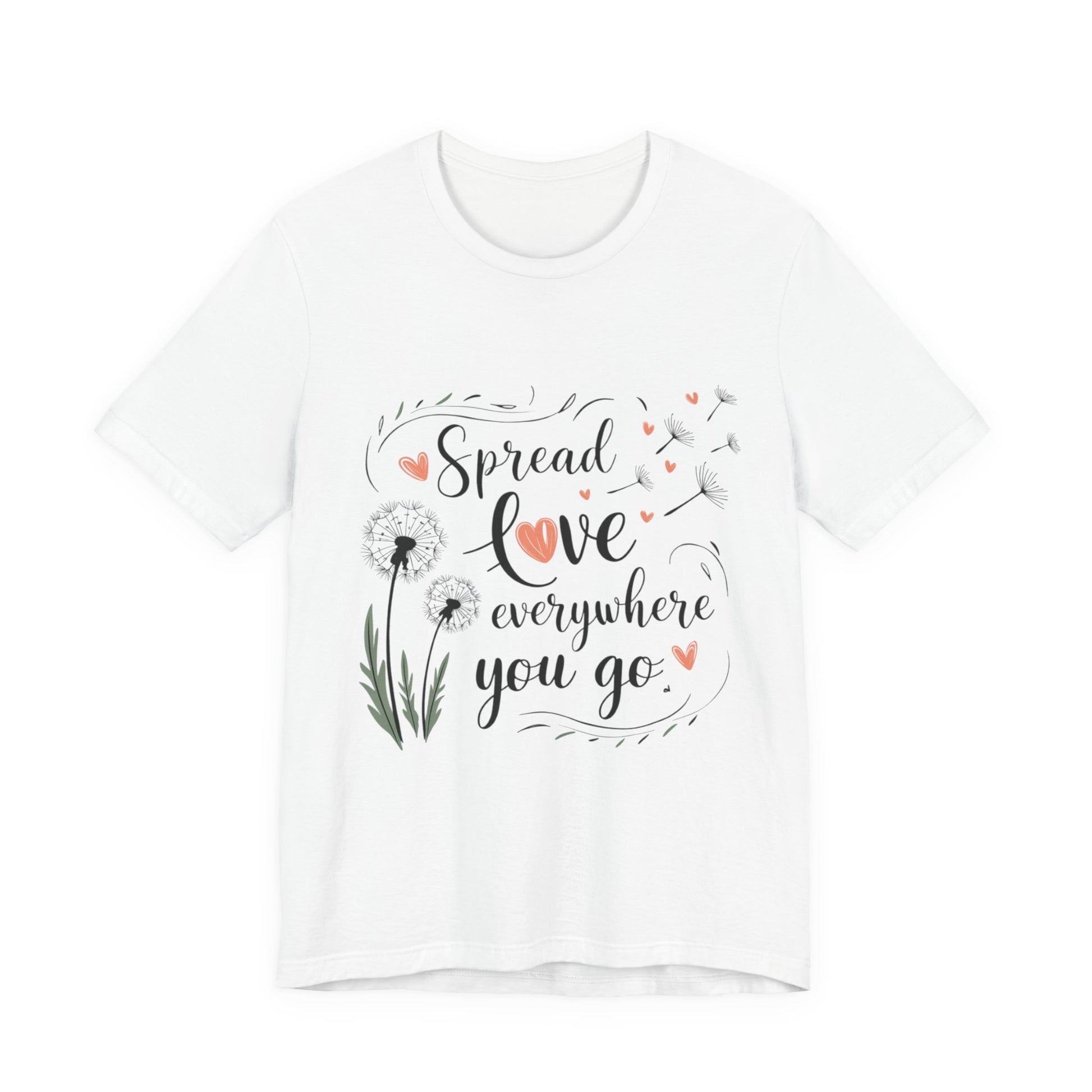 Spread love everywhere you go with this gentle and uplifting T-Shirt featuring a beautiful design with dandelions and heart shapes. This T-Shirt is ideal for those who want to embrace a message of love and positivity in their daily life. It's a great choice for casual wear.