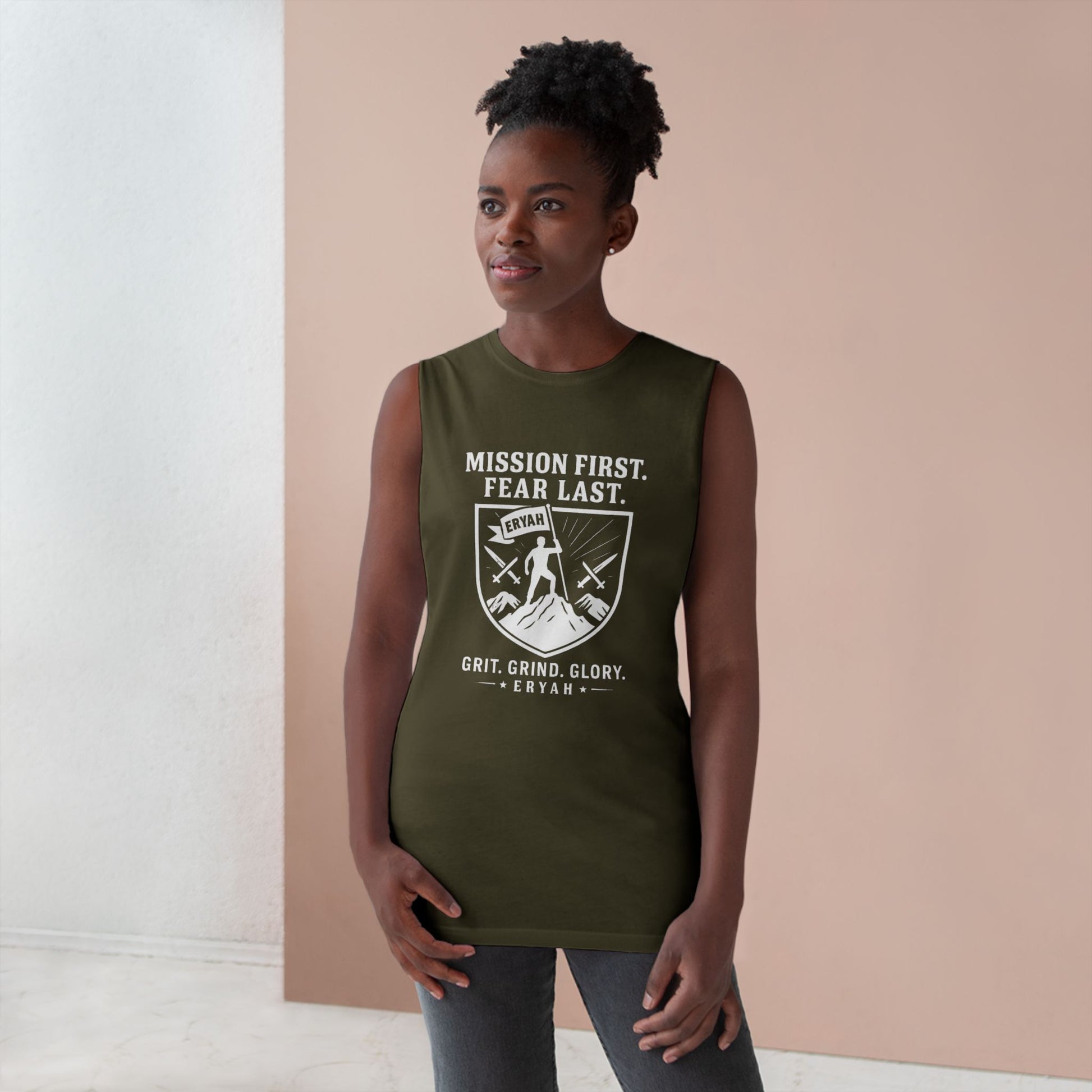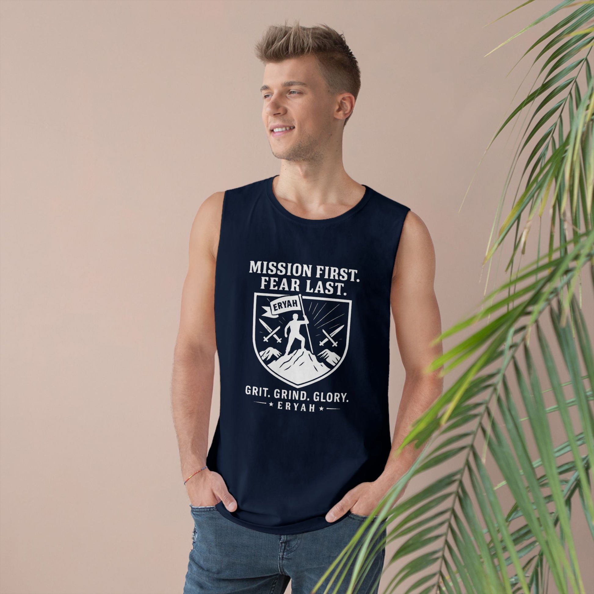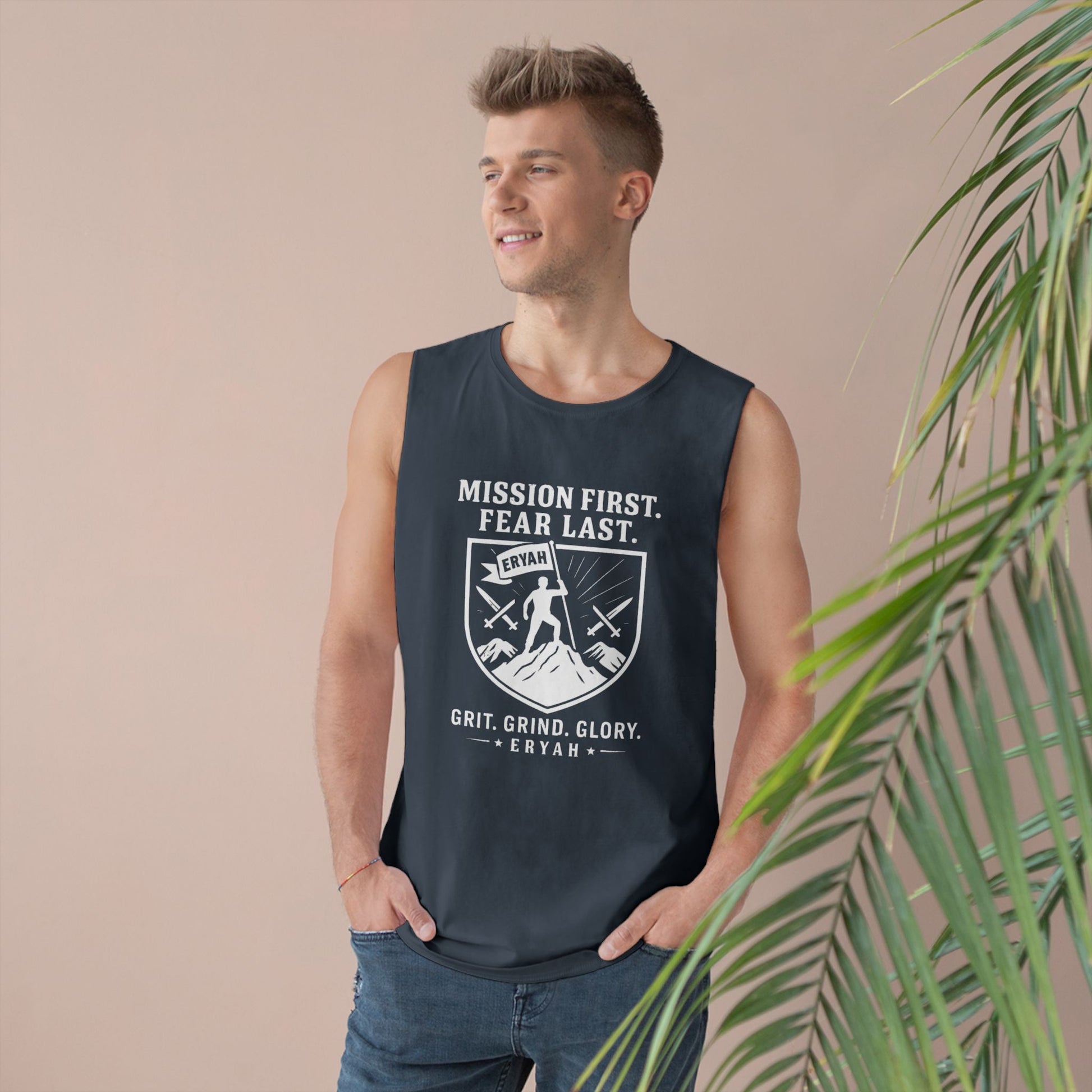 Unisex Barnard Tank: Mission First, Plan Last, Inspirational Workout Top, Casual Summer Shirt, Fitness Gift, Gym Wear