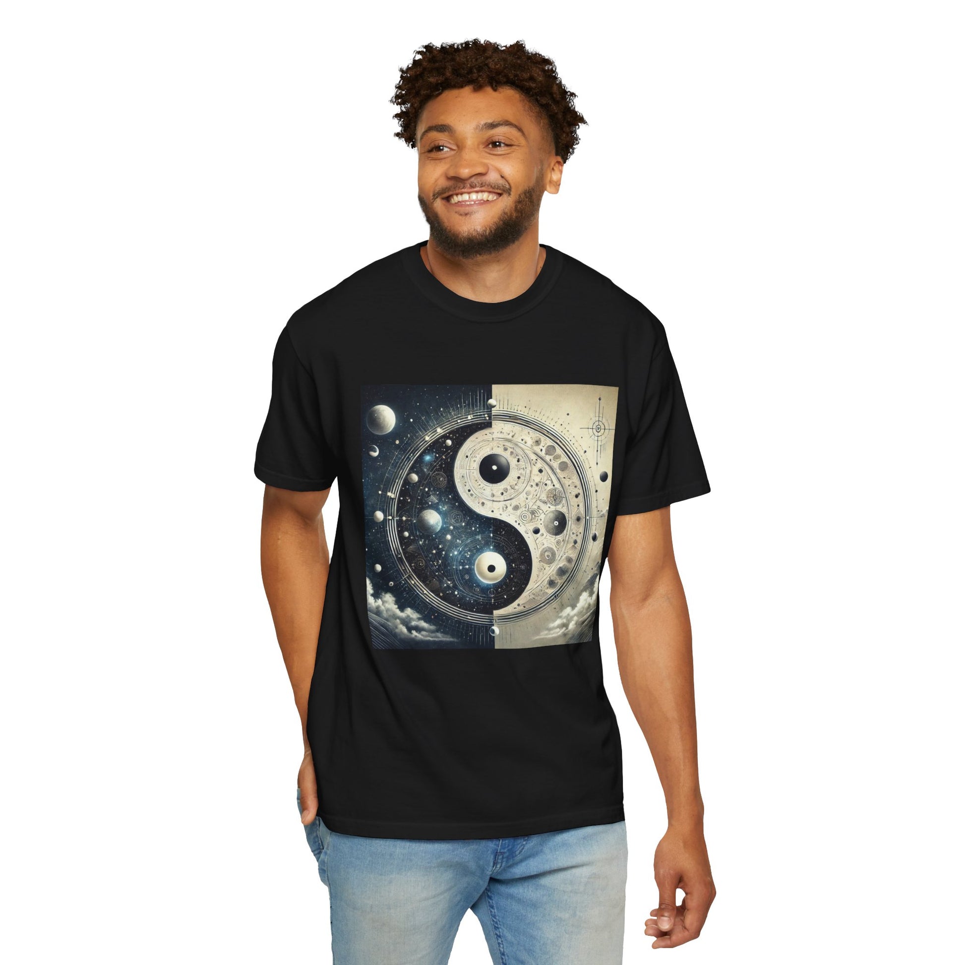 Align your energy with our Cosmic Balance Yin Yang T-Shirt, where ancient wisdom meets celestial wonder. This isn’t just apparel—it’s a wearable mandala, featuring: