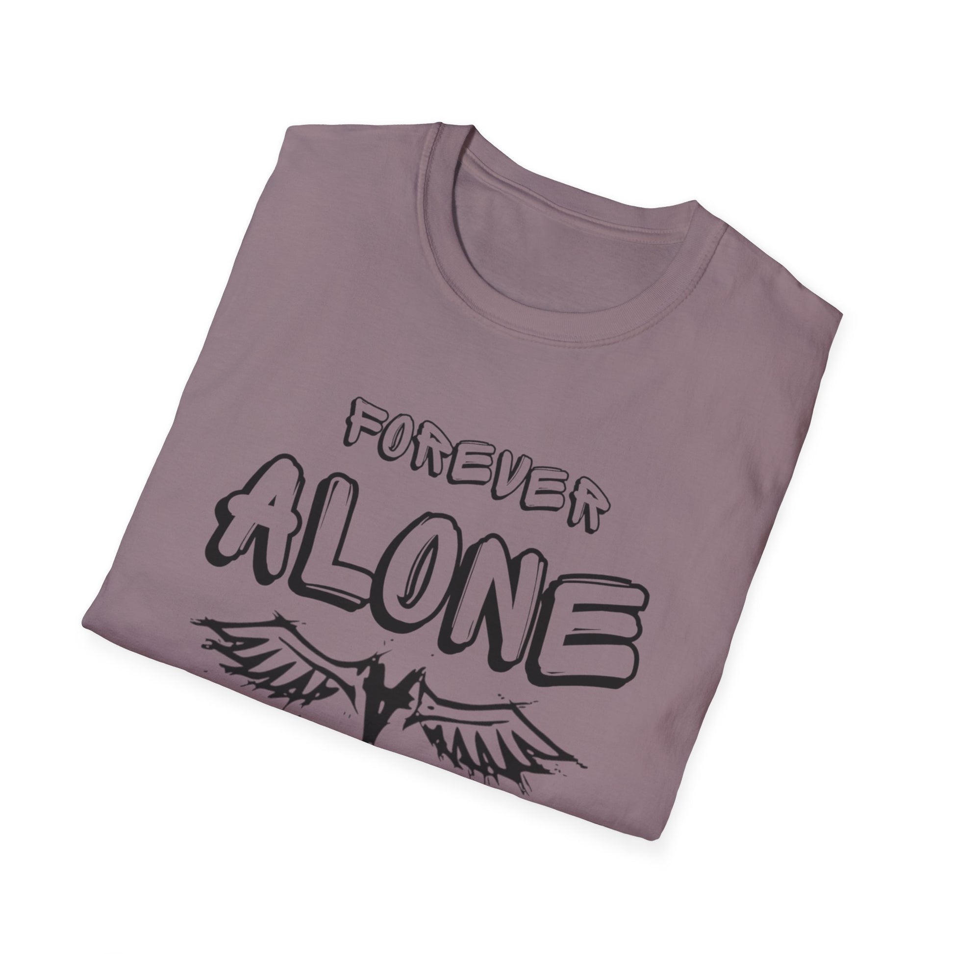 Embrace your unique path with our 'Forever Alone' graphic tee. Perfect for those who appreciate a darker aesthetic and march to the beat of their own drum. Made from soft, comfortable fabric, it's a statement piece for everyday wear. Suitable for adults with alternative and edgy styles, perfect for expressing individuality. Relevant for casual wear, music festivals, and alternative fashion events.
